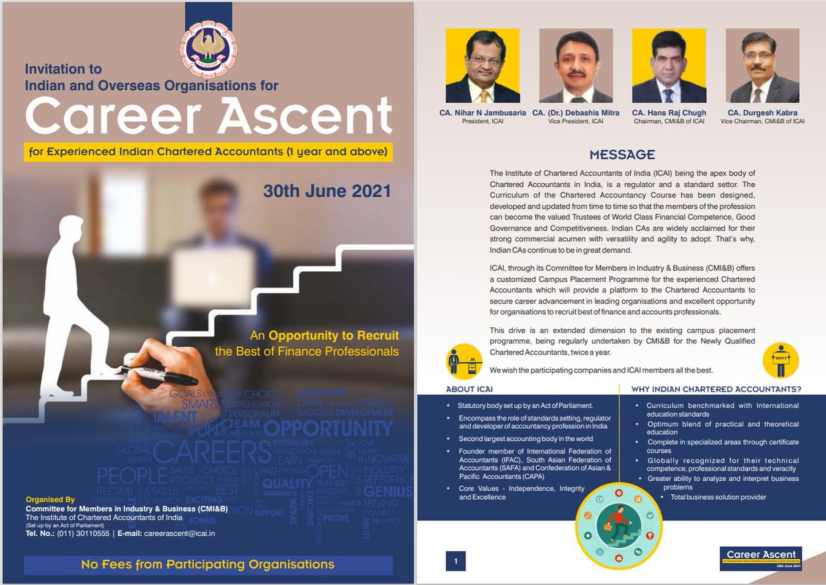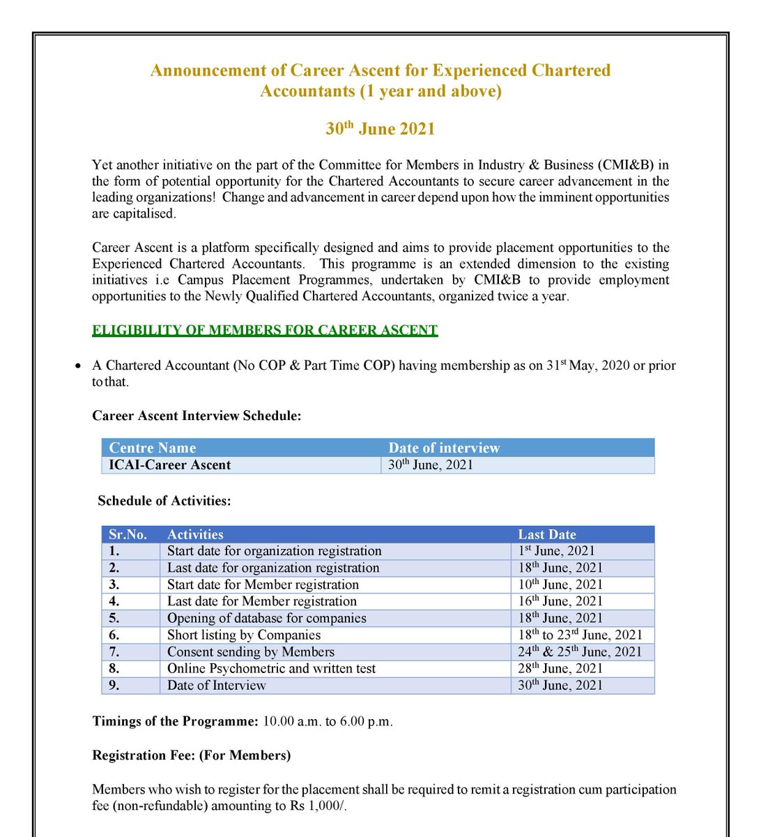 Institute Of Chartered Accountants Of India Icai On Twitter Invitation For Indian And Overseas Organizations For Career Ascent For Experienced Indian Chartered Accountants 1 Year And Above Date Of Interview 30th